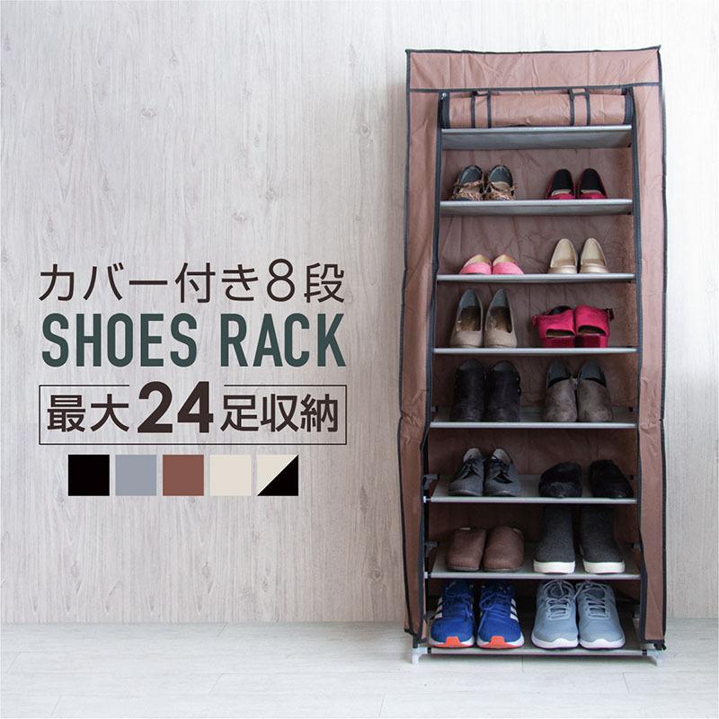 シューズラック スリム 省 スペース 8段 カバー付き 大容量 最大24足 おしゃれ 省スペース 靴棚 一人暮らし 狭い玄関 靴 収納 靴箱 薄型 インポート直販ks問屋 通販 Paypayモール